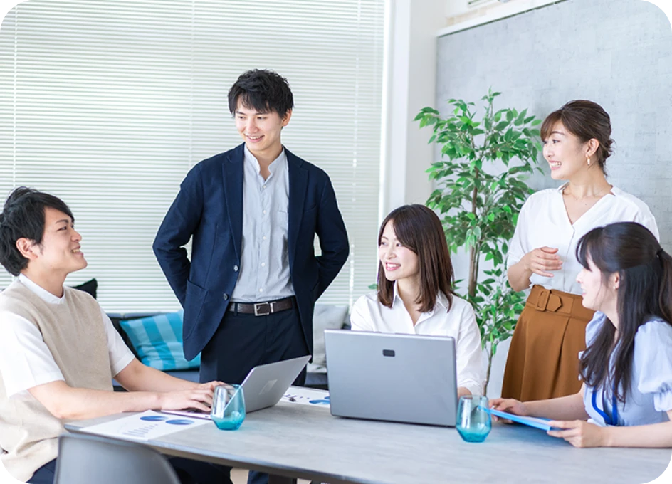 新入社員の方には、安心して業務に取り組めるよう、入社後に新人研修を受けていただき、その後は配属先にて先輩社員によるOJT(業務を通じた指導)を通じて、基礎的な業務から段階的に習得していただきます。